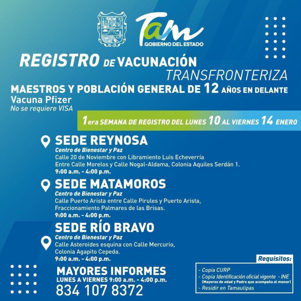 Ciudad Victoria, Tamaulipas.- En su reporte de este domingo, la secretaria de Salud de Tamaulipas, Gloria Molina Gamboa confirmó 614 casos de COVID-19 y 4 fallecimientos, por lo que urgió a la población a evitar salidas no esenciales y reforzar las medidas de prevención tanto en el hogar, los espacios públicos y el trabajo. Precisó que todos los municipios se encuentran en fase I de la emergencia sanitaria y recomendó atender todas las recomendaciones emitidas por el gobierno de Tamaulipas a través del Comité Estatal de Seguridad en Salud a fin de proteger a la población y disminuir casos, hospitalizaciones y fallecimientos. Molina Gamboa insistió en utilizar cubrebocas en todos los espacios públicos, lavarse las manos frecuentemente con agua y jabón o utilizar alcohol gel, respetar la sana distancia, completar el esquema de vacunación Covid y aplicarse la dosis […]
