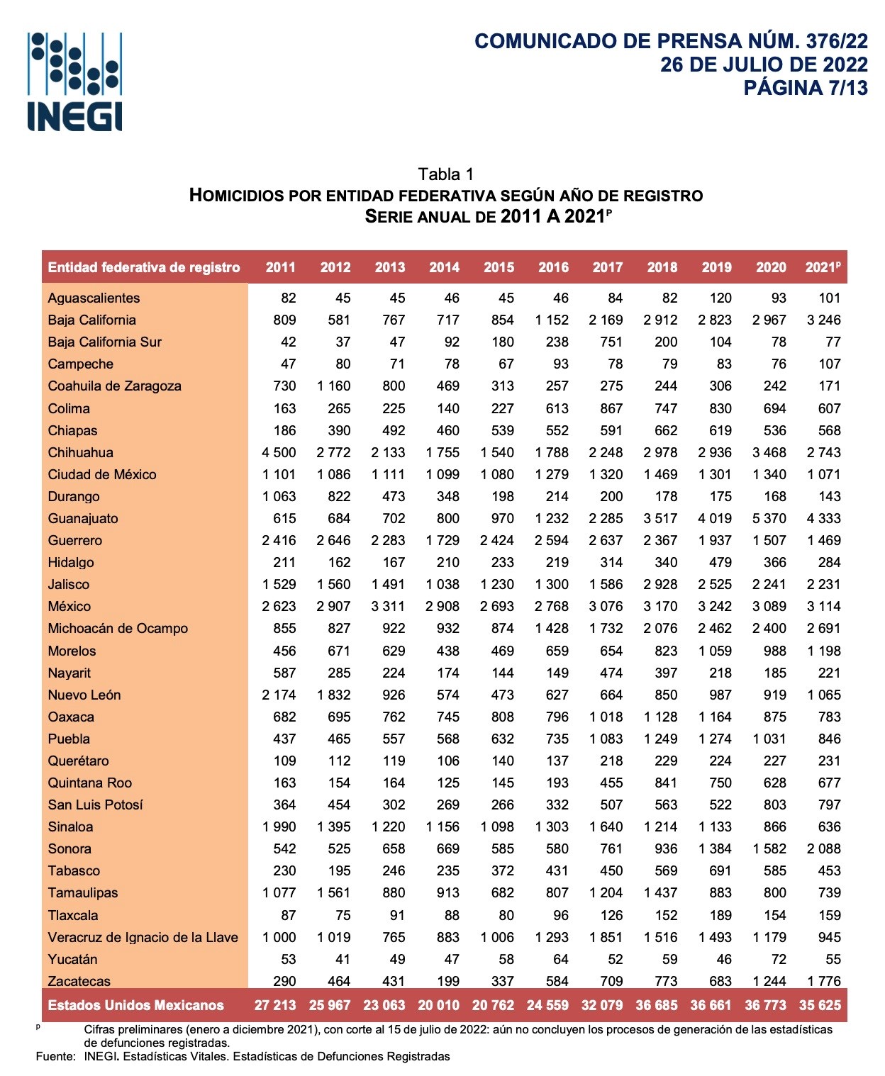 Destaca el hecho de que, con base en el reporte de INEGI, en Tamaulipas se redujo en alrededor de 50 por ciento el número de homicidios respecto a 2018, al pasar de 1,437 muertes en este año a 739 en 2021.