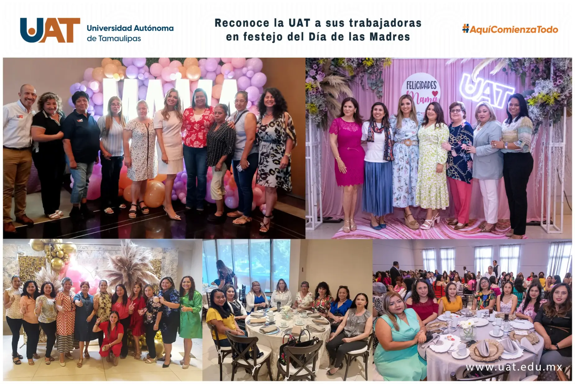La Universidad Autónoma de Tamaulipas (UAT) ofreció su tradicional festejo por el Día de las Madres a las trabajadoras sindicalizadas adscritas a los planteles del Campus Victoria, evento en el que se les reconoce su trabajo y dedicación, el cual ha coadyuvado al engrandecimiento de esta casa de estudios.